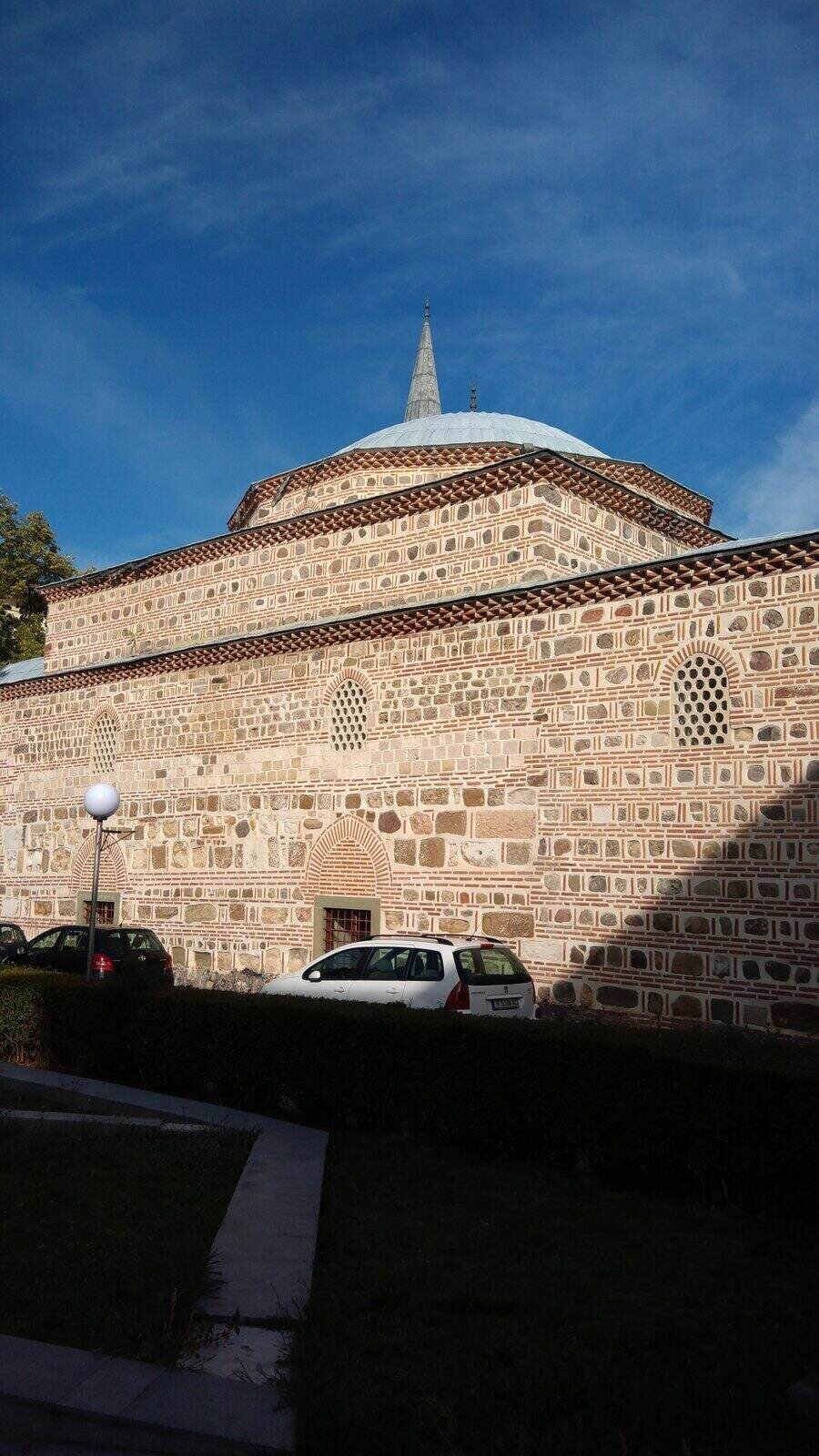 **Централният купол впечатлява с мащабността си**, поддържан от мощни колони и високи арки. Джамията е **единственият действащ мюсюлмански храм в града** и сред най-забележителните архитектурни паметници тук. Въпреки частични разрушения в миналото, тя е **възстановена до първоначалния си облик**. Вътрешните стенописи, създадени през **XVII век**, са запазени в отлично състояние.