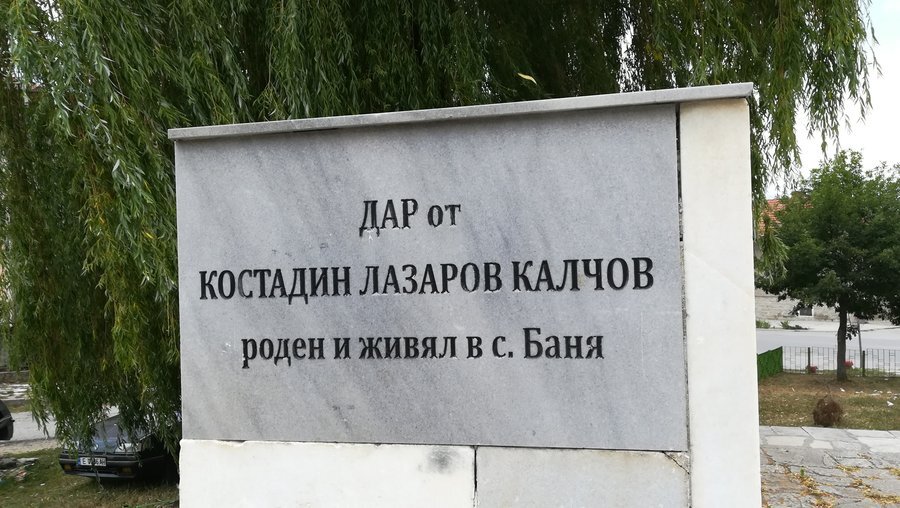 Паметникът е създаден по идея на Костадин Калчов, емигрант, роден в село Баня. Строежът започва през 1964 г., а официалното откриване се състои на 18 юни 1967 г. в чест на 85-ата годишнина от рождението на Георги Димитров. Скулптурите са с височина три метра и изобразяват Ленин, който говори, докато Димитров го слуша с почит. Това е единственият паметник в света, на който двамата лидери са заедно. Исторически, Ленин и Димитров са се срещали веднъж през 1921 г., а през 1924 г. Димитров е бил един от носещите ковчега на Ленин, заедно със Сталин.