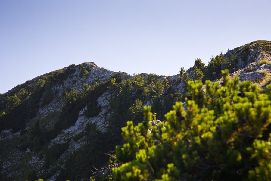 **Югозападните и югоизточните склонове** на върха са **много стръмни** и **покрити с трева**, докато **северните** са **гористи**. На **югозапад** ридът **Курткая** се превръща в **изключително тесен карстов ръб** с **отвесни склонове** (над **200 метра** дължина), който придава **характерен облик** на Шаралия, виждан от **местността Върбите** или от **Конски кладенец**.