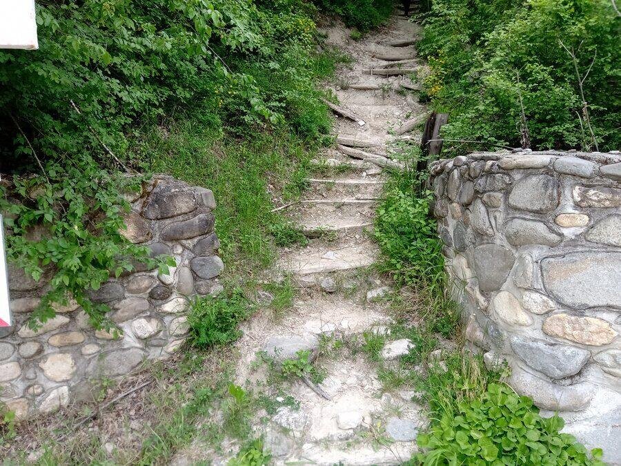 Пътеката, изградена от калдъръм, свързва село Рожен с Роженския манастир. Тя започва от хотел "Динчова Къща" и води до манастира. При нормален темп пешеходецът може да я измине за около 10 минути. В началото има лек наклон нагоре.