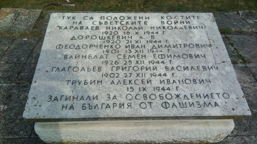 В тяхна памет тук почиват останките на съветски воини, отдали живота си за свободата на България от фашисткото иго. Сред тях са Николай Николаевич Караваев, А.В. Дорошкевич, Иван Димитрович Феодорченко, Семен Ефимович Вайнблат, Григорий Василевич Глагольев и Алексей Иванович Трубин.