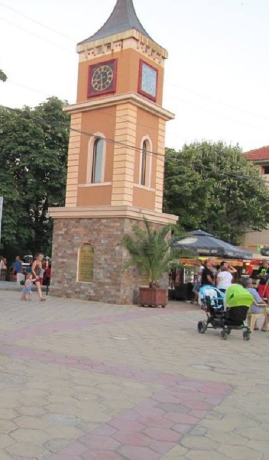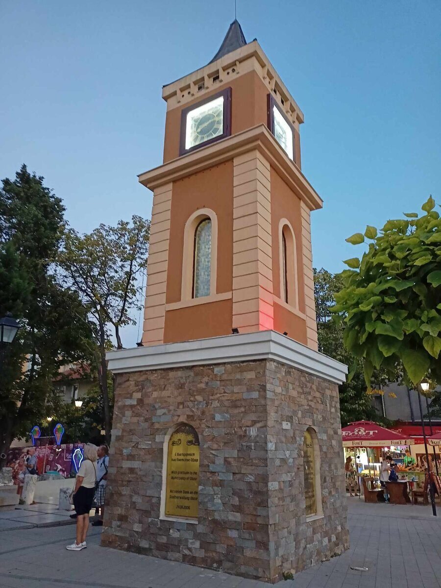 Дванадесетметровата кула е изградена във възрожденски дух. На върха ѝ от всяка страна се намират по един кръгъл часовник. Площадът, украсен с тази кула, е идеално място за топли разговори с близки и за незабравими моменти с любими хора.