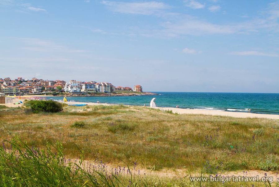 **Плаж "Харманите"** е удостоен с елитната европейска награда **"Син Флаг"**, което гарантира висок стандарт на чистота и услуги. Разполага с **обширна плажна ивица**, където освен платени чадъри, можете да поставите и свои. Морето е **с чиста, бистра вода и спокойни вълни**.