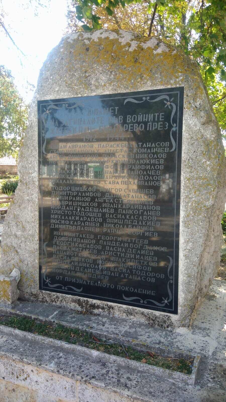 В село Българево се намира мемориал в чест на местните жители, загинали във войните между 1912 и 1944 г. Той е построен с доброволни дарения по предложение на активна група от селяни. На паметната плоча са изброени имената на 54-мата загинали.