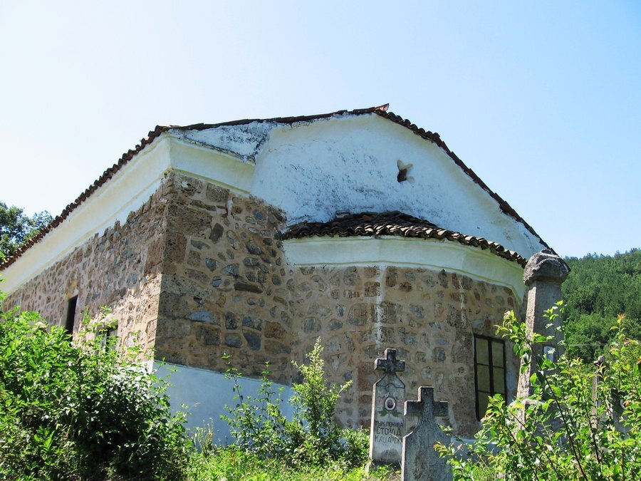 **Църквата е изградена през 1863 година, според предания, от майстор Лазар. Сградата е изпълнена от камък, с масивен подпокривен корниз, който от западната страна образува три арки. На запад и север са разположени два входа, украсени с каменни рамки и релефни декорации. Иконите в иконостаса са дело на художника Никола Образописов. Храмът е обявен за архитектурен паметник на културата.**