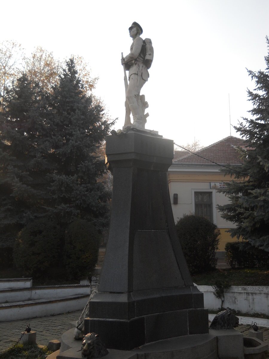 В памет на двама руски войни, загинали през Освободителната война от 1877-1878 година, както и на седемдесет български воина, паднали в Балканските войни между 1912-1913 г. и Първата световна война от 1914-1918 г., е издигнат този паметник. Централната скулптура, изобразяваща войн, е монтирана върху масивен гранитен постамент. От предната страна на блока е разположен герб, а от двете му страни в основата се намират скулптурни изображения на лъвски глави, които също функционират и като чешми.