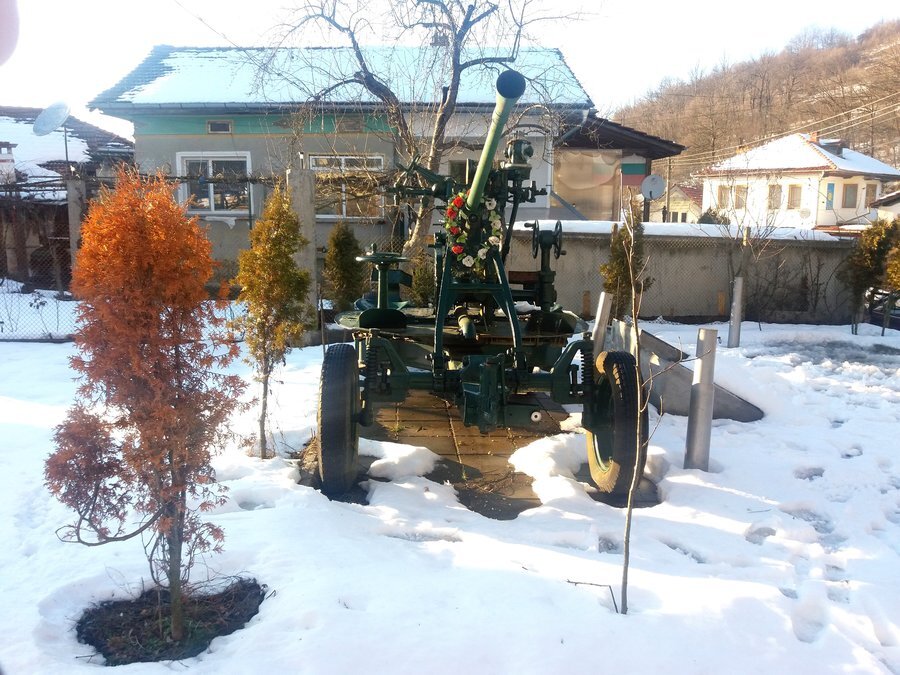В кв. "Попишка" в град Троян е изложен масивен 37-милиметров зенитен снаряд по съветски образец от 1939 г. Той е подарен на общината от Министерството на отбраната. Този тип оръжие е било въведено във въоръжение на българската армия след 1945 г. Обектът е обезопасен и предлага възможност за спокойно сядане и забавни фотографии, които да запазят спомени от посещението ви в Троян.