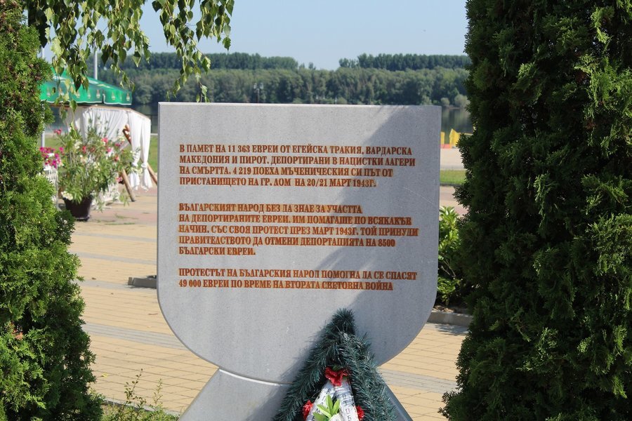 Мемориалният паметник в чест на жертвите евреи е издигнат на пристанището в град Лом. Той служи като напомняне за 11 363 евреи от Егейска Тракия, Вардарска Македония и Пирот, изпратени в нацистките смъртоносни лагери. От тях 4 219 души са били натоварени на кораби именно от пристанището в Лом, преди да бъдат транспортирани към лагерите.