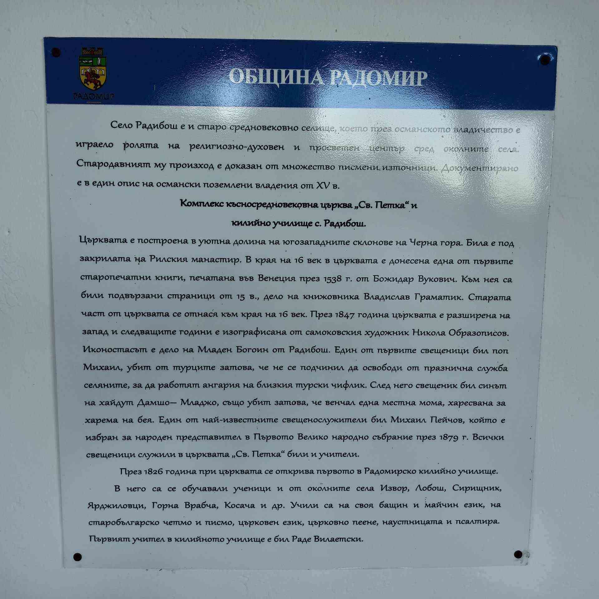 Морският нос Радибош на полуостров Тринити в Антарктика е наименуван в чест на селището.