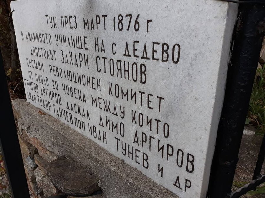 В края на март 1876 г. в село Дедево, в местното килийно училище, апостолът на свободата Захари Стоянов създава таен революционен комитет. Сред неговите членове са Григор Аргиров, учителят Димо Аргиров, дядо Тодор Ганчев, свещеник Иван Тунев и още около 20 души. В памет на това събитие на оградата на църквата *"Св. Атанасий"* – в чийто двор е било училището – е поставена спомен-плоча.