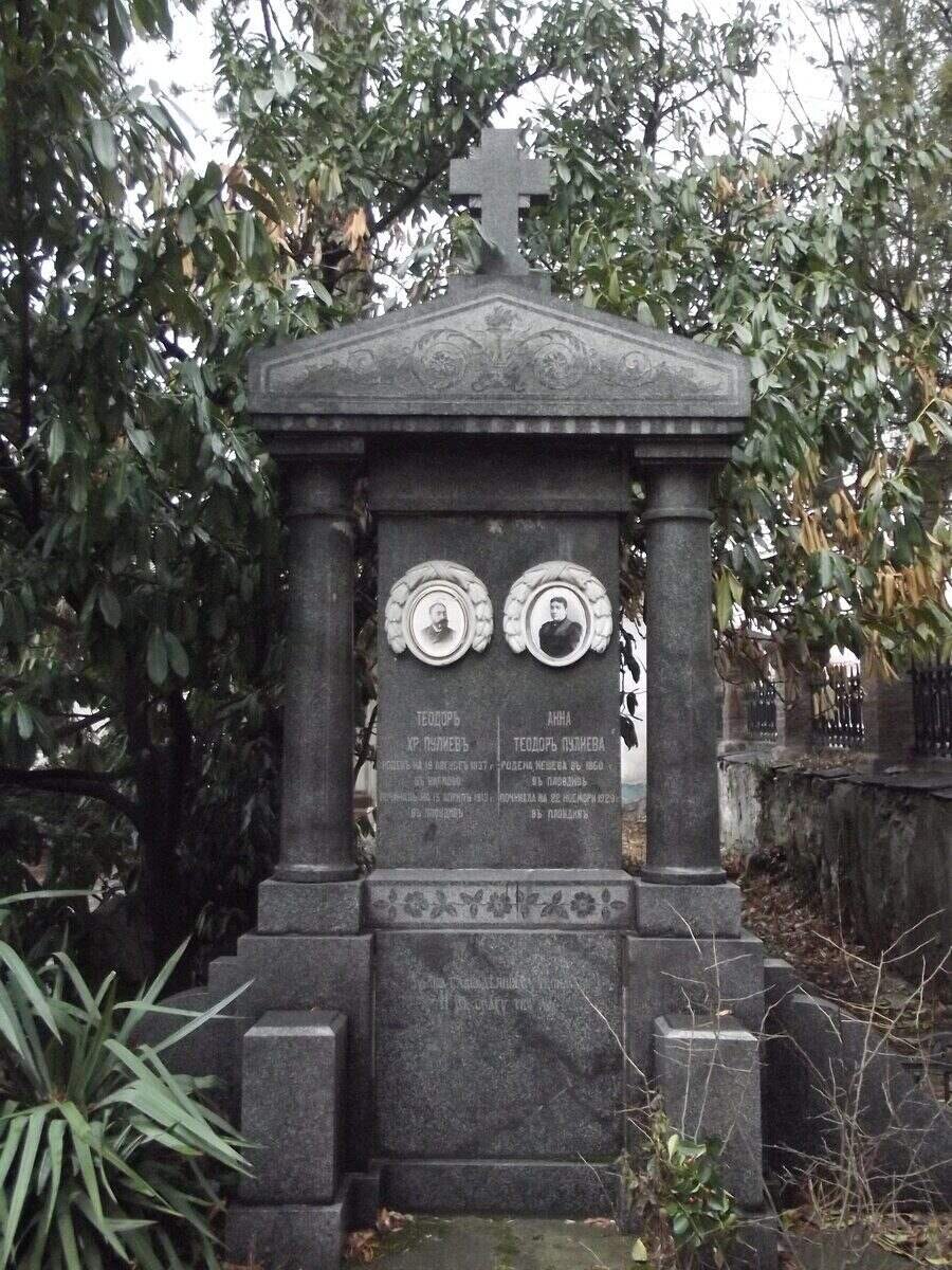 Църквата "Успение на Пресвета Богородица" в Карлово е обновена през 1851 година. На църковния двор са разположени гробовете на известните карловски дарители Тодор и Ана Пулиеви. Тодор Христов Пулиев (август 1839 – 15 април 1913) е търговец, роден в Карлово. Образованието му започва при Райно Попович в родния му град, а после учи при Найден Геров в Пловдив. Две години посещава гръцко училище в Букурещ. Братовчед е на Христо Георгиев. Завършва търговско образование във Виена. Занимава се с търговия в Галац. След Освобождението се завръща в Карлово, а впоследствие се мести в Пловдив, където умира. Останките му са пренесени в Карлово и погребани в църквата "Св. Богородица". Ана Пулиева (неизвестна дата на раждане – 22 ноември 1929) е общественичка, родена в Карлово. Почетен член е на женското благотворително дружество "Възпитание" и на други благотворителни организации в Пловдив. Умира в Пловдив. Тодор Пулиев завещава почти цялото си богатство на Карлово с благотворителна цел.