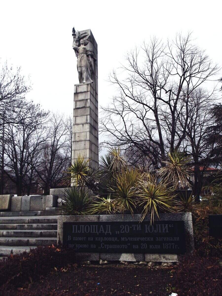 Мемориалната плоча на площад "20-ти юли" е издигната в памет на загиналите карловчани на 20 юли 1877 г. Идеята за създаването на този паметник идва от младежкия парламент към СОУ "Христо Проданов", а площадът носи името на същата трагична дата.