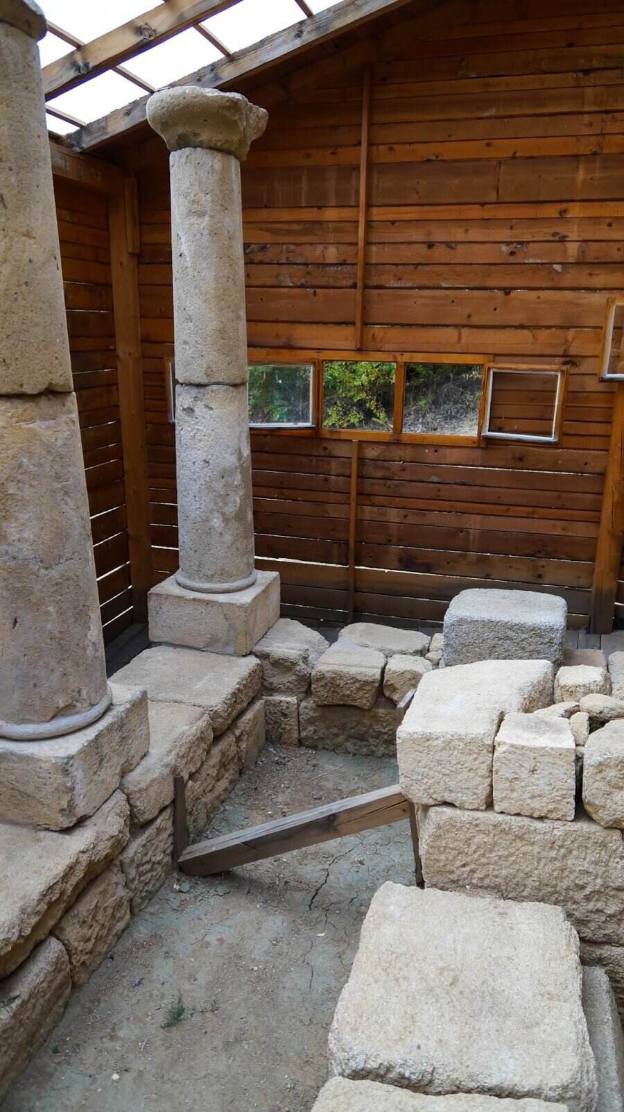В могилата "Хоризонт", която е включена в тракийския храмов комплекс "Старосел", се намира единствената в Тракия колонада, съставена от десет колони. Шест са разположени отпред, а по две стоят от всяка страна, образувайки правоъгълна конструкция, изнесена пред самата могила. Всяка колона стои на база, състои се от два барабана и завършва с капител в раннен дорийски стил. Пространството между челните и страничните колони прилича на напречен коридор, но всъщност е служело като просторно преддверие, достъпно през три стъпала и вход между средните колони. Оттам, през по-малко предверие, се достига до главната камера. През средата на IV век преди Христа в храма е погребан обожествен тракийски владетел, което го превръща в мавзолей. До владетеля е положен и неговият кон. По-късно, поради религиозни или политически причини, светилището е осквернено, ограбено, съборено и засипано. От дрехите и предметите, с които е погребан владетелят, са запазени само петнадесетина златни пластини от броня, дванадесет бронзови върха за стрели, сребърни пръстени и фрагменти от керамични съдове.