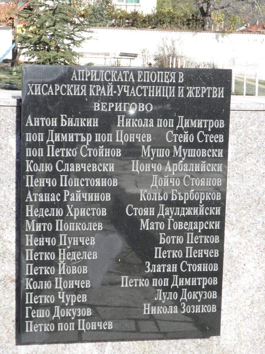 В Хисаря се намира паметникът на Априлци, изграден през 1976 г. в чест на 100-годишнината от Априлското въстание. Жителите на село Веригово (днес квартал на Хисаря) активно участвали в въстанието, след което селото било изгорено. През 1887 г. Емили Странгфонд помогнала на пострадалото население, като дарила 100 палатки, дрехи и храна.