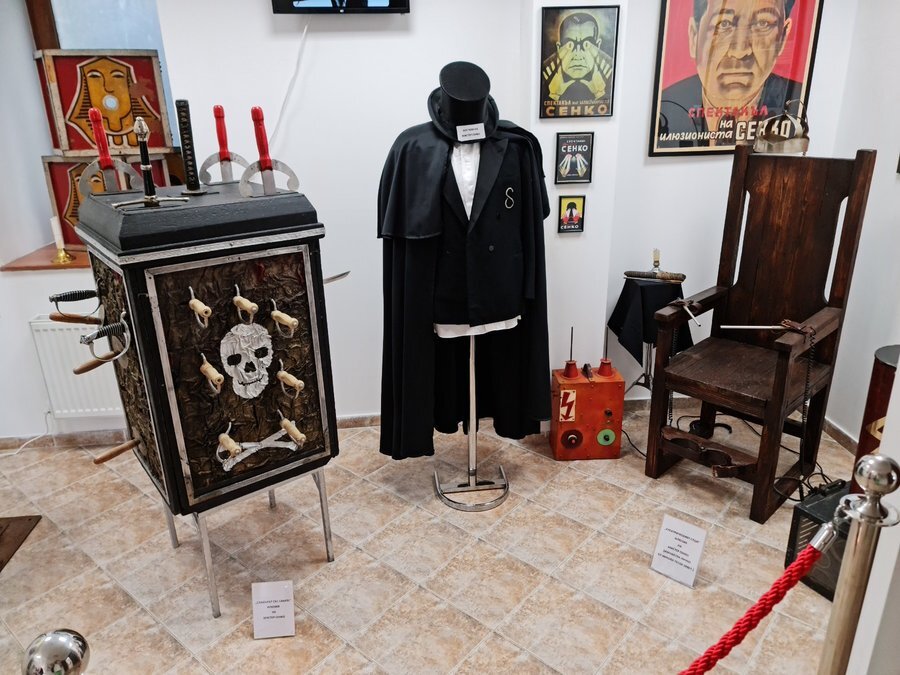 Колекцията включва уникални предмети, свързани с легендарни магове като **Мистър Сенко, Факира Мити, Орфи и Астор**. Особено впечатляващ е **електрическият стол**, изработен специално за Мистър Сенко от самия **Никола Тесла**.