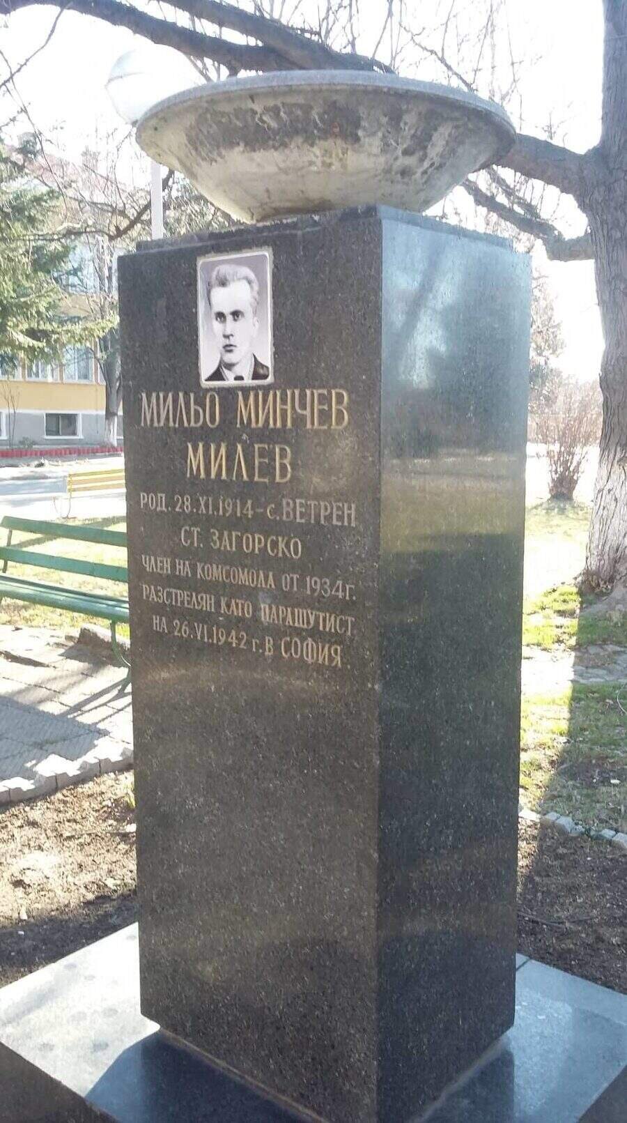 Паметникът, посветен на Мильо Минчев Милев, е разположен в сърцето на село Ветрен. Той е роден в същото село, Старозагорска област, на 28 ноември 1914 г. От 1934 г. е член на Комсомола. Загива на 26 юни 1942 г. в София, разстрелян като парашутист на гарнизонно стрелбище.
