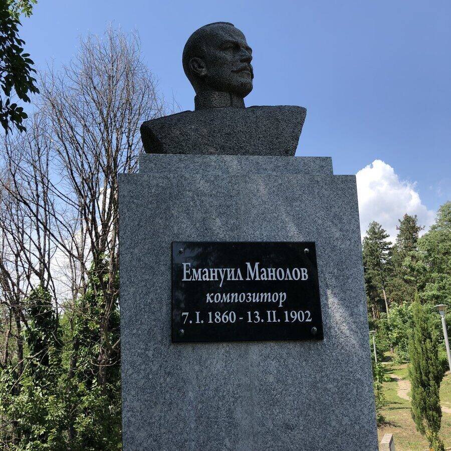 Паметникът изобразява Емануил Манолов – изтъкнат български композитор, диригент, учител и обществен деятел (1860–1902). Роден в Габрово, той прекарва голяма част от живота си в Казанлък. Автор е на първата българска опера *„Сиромахкиня“*, както и на популярни народни песни като *„Хубава си, татковино“* и *„Каква мома видях, мамо“*. Считан е за пионер в професионалното композиторско изкуство в България. Бюстът е разположен в парк *„Тюлбето“*.