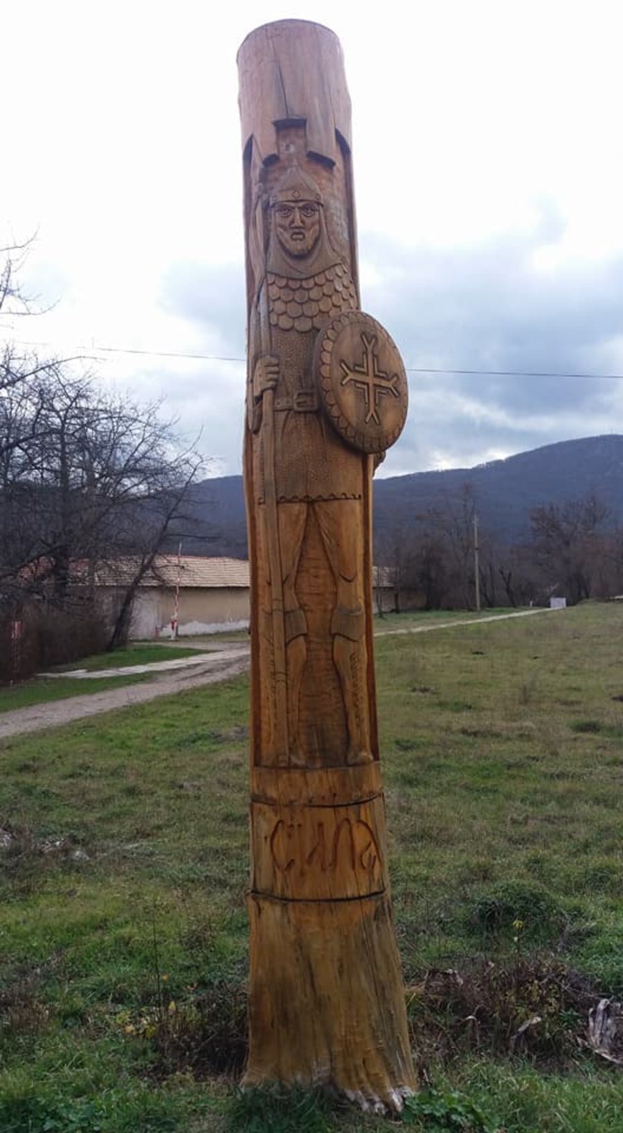 Калин Къров, дърворезбар от Велики Преслав, пресъздава три отсечени тополи от древния град в символични фигури, вдъхновени от Вярата, Силата и Словото. Първата скулптура представя монах, втората изобразява воин с кръгъл щит, а третата – просветител, държащ книга и перо.